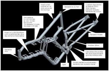 integrated torque arms, 29,7mm seat tube, 19" size, adjustable head tube angle...