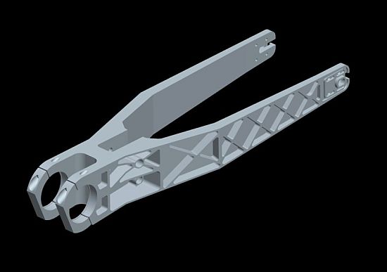Two piece solid 7005 aluminium swingarm for RC frame.